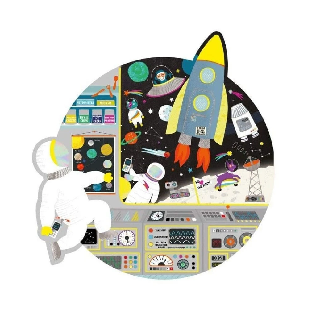 100pc Space puzzle is made up of 3 separate puzzles that all integrate into 1. There are 2 x 12pc larger puzzles that then attach onto the main 76pc puzzle. Our Space design has a large size astronaut and a large size spaceship to find and make, they then slot into the space station. All contained in a fabulous high quality attaché case with brightly coloured handle. So much fun! Suitable for children aged 5+ and it’s quite a challenge!