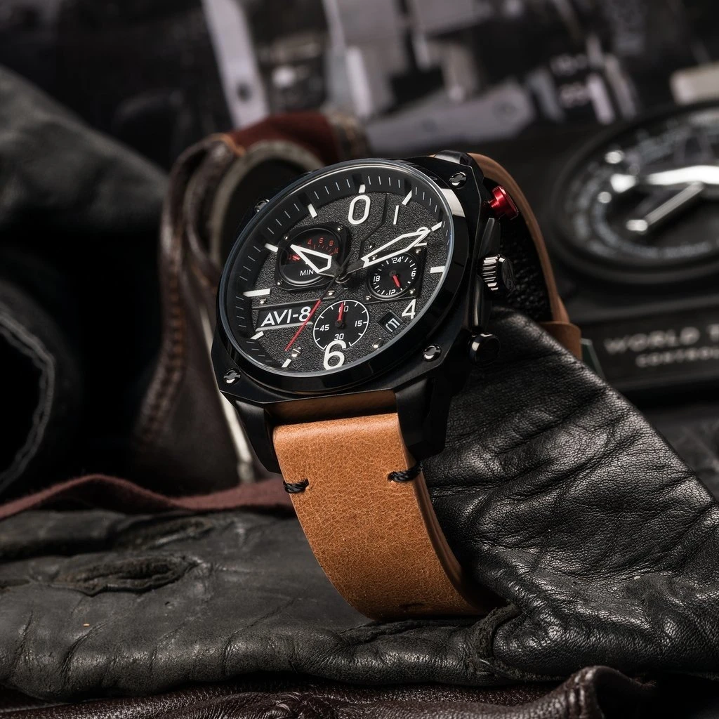 Snugly strapped to the wrist with a hand stitched vintage genuine leather strap – the AV 4052 is an impressive, functional and unique aviation inspired timepiece like no other.