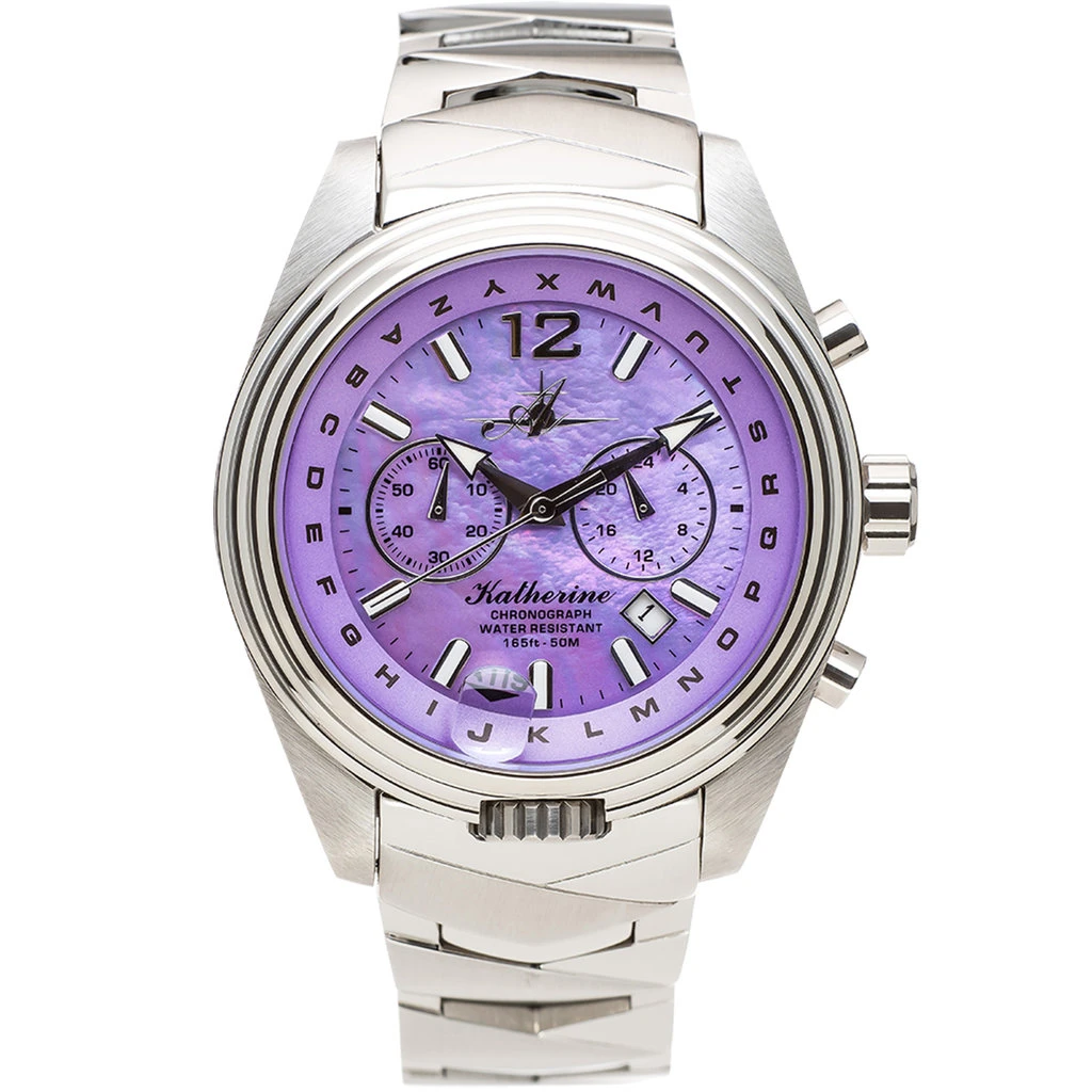 Royale Purple Mother of Pearl dial complete this beautiful classy looking watch. Features include patent-pending ALPHABezel to assist in remembering ATIS when you fly or anything you can use a letter for (One of our Crew Members said she is going to use it to remember the name of people she meets for the first time – clever!). Just rotate the alphabet letter to the magnifying window at 6:30. EZ Squeeze pins on the back of the band allow you to easily remove or put on any 20mm strap. No need to use any tools or take it to a jeweler to swap out your band.
