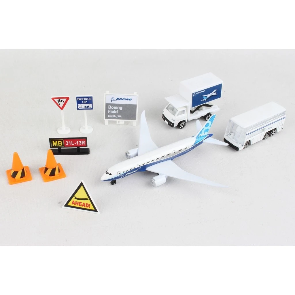 Comes with a 787 Dreamliner aircraft and various other vehicles and accessories to build the airport of your dreams!