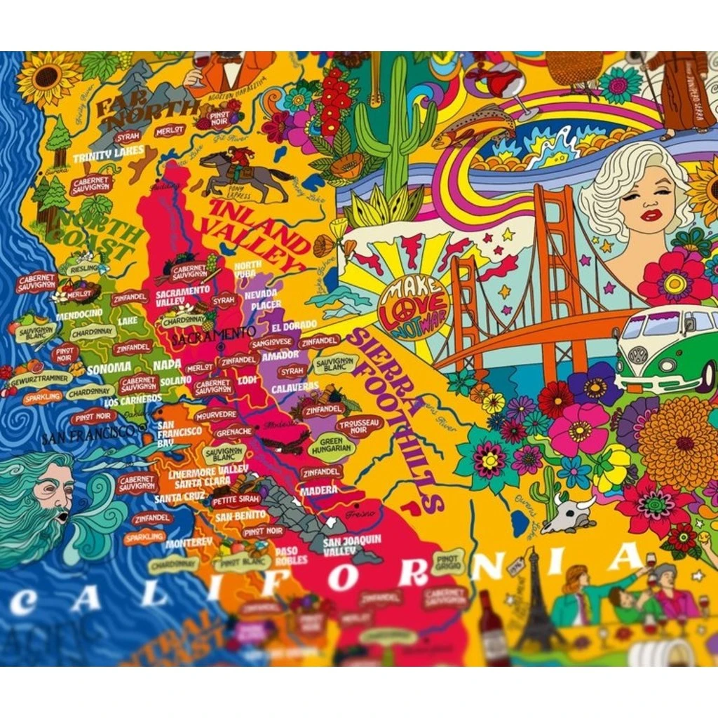 Carefully curated by a sommelier, the Californian Wine Puzzle highlights California’s main wine-producing regions and key grape varieties. The box also features our Californian grape profiles which describe the main characteristics and aromas in the region, plus lots of food pairing tips! Illustrated by hand, the design was first hand-drawn and then attentively reviewed with the help of some of the top sommeliers in the world.