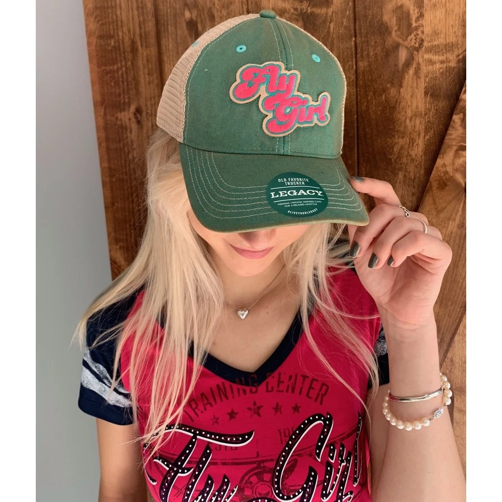 This iconic Old Favorite Trucker cap features an unstructured crown, fully curved visor and an open back snap closure. Designed and tailored with a classic fit for all you “Fly Girls”