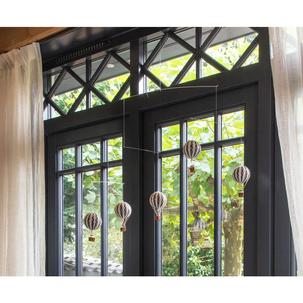 Five little balloons peacefully turning around each other. Ivory and Black colors, all hand made, easy to assemble.
