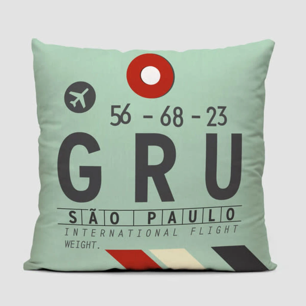 Throw pillow cover inspired on vintage luggage tags with airport codes on it. Perfect for travel lovers, frequent flyers and aviation enthusiasts.