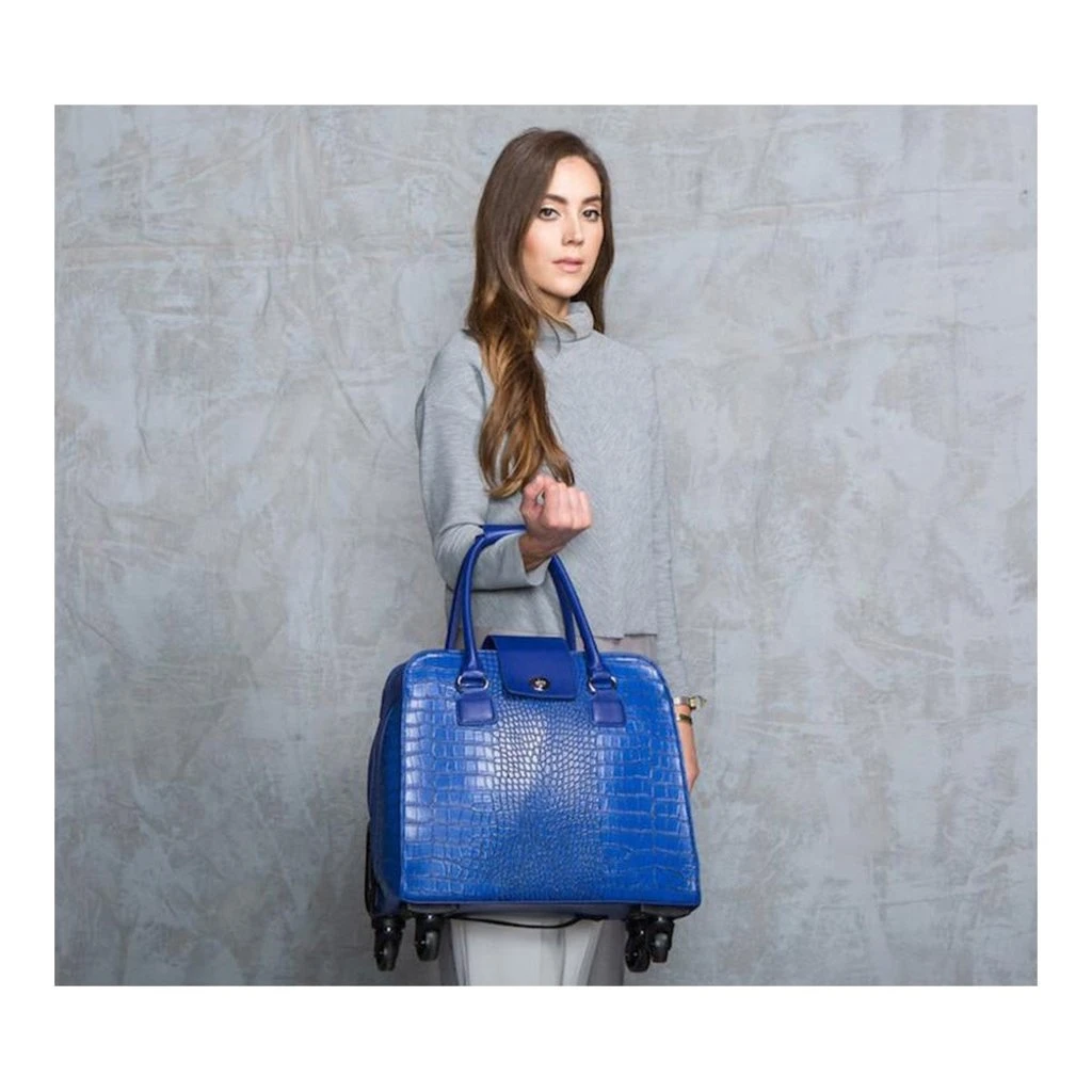 Harlequin Rolling Tote Blue Vegan Crocodile