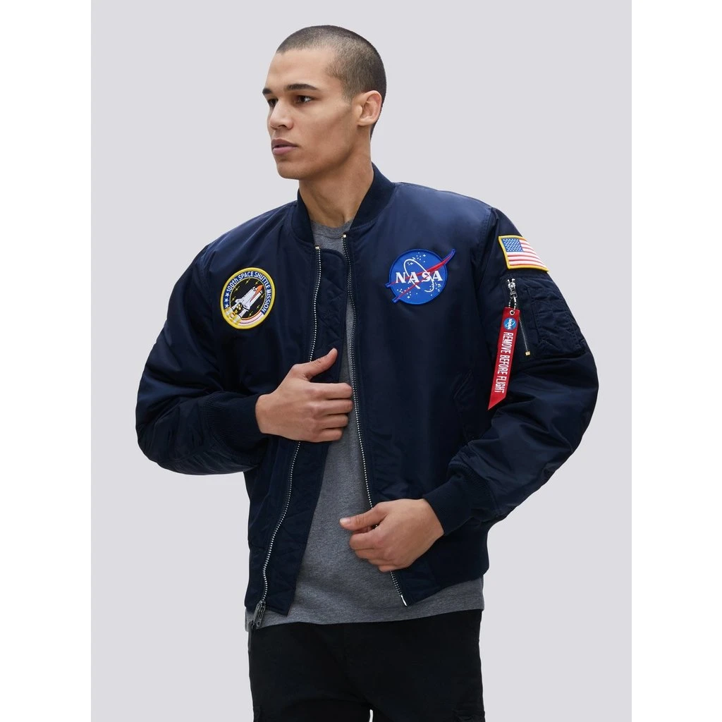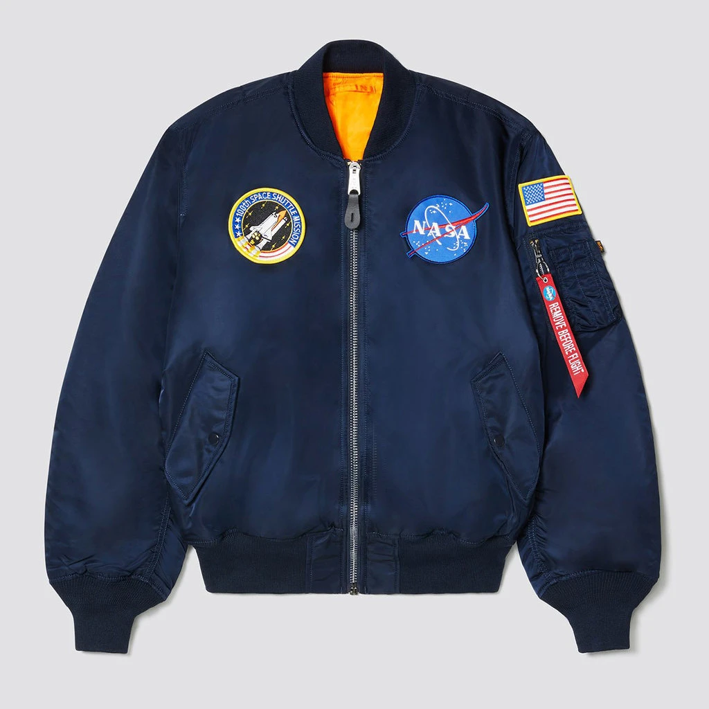 Outerwear doesn’t get much cooler than our classic MA-1 NASA astronaut flight jacket! This Replica Blue NASA jacket features the 100th Space Shuttle Mission and American flag patches to show your space age support. This genuine astronaut flight jacket also boasts an Alpha signature utility or pencil pocket, a knit collar, cuffs and waistband to keep in warmth, as well as a 100% water repellent, nylon satin flight shell with polyester interlining. It’s out of this world!