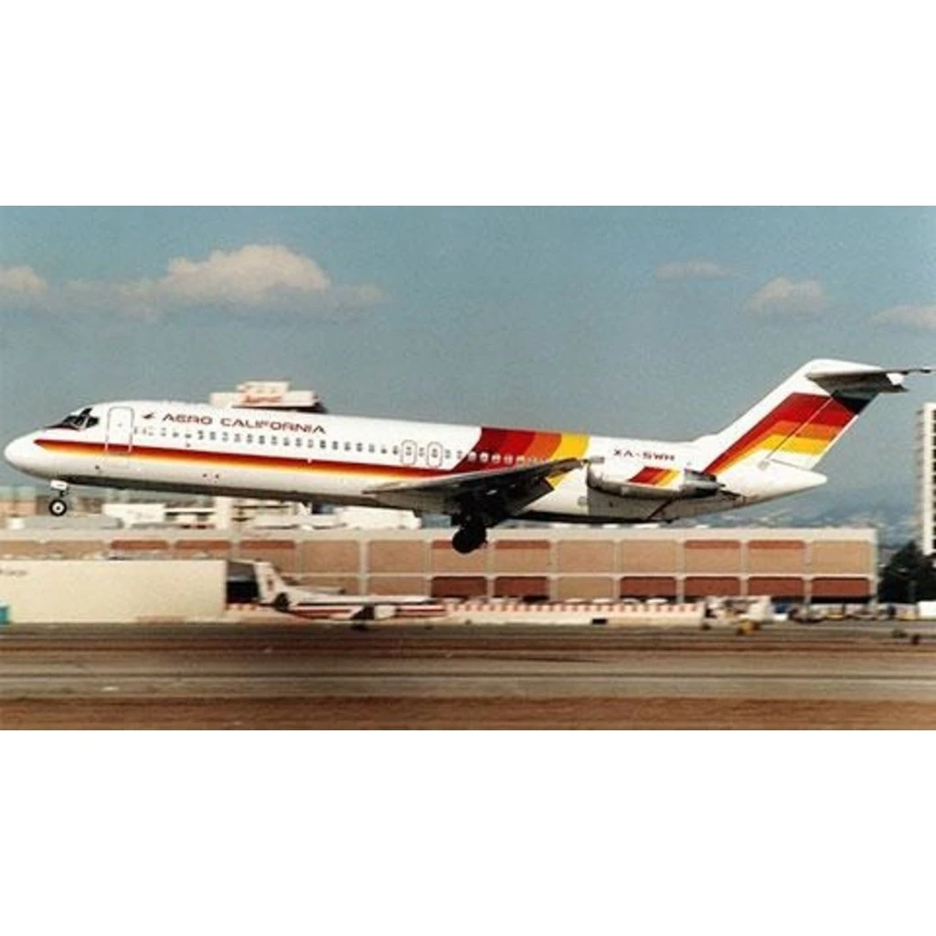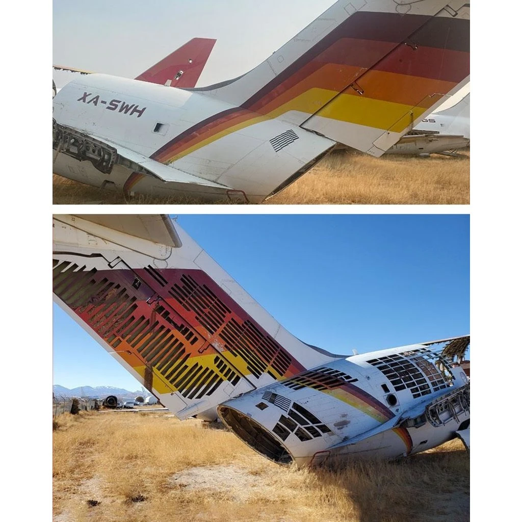 The DC-9 came off the Douglas Aircraft production line in Long Beach, California in 1965 – just one more amazing design from the unrivaled Douglas aircraft lineage. Douglas Aircraft designed and produced dozens of incredible wartime aircraft, as well as a succession of popular passenger jets including their workhorse, the DC-9. The rich yellow, orange, red, and wine colors were intended to evoke images of sunny Baja California Sur, the home of the airlines’ headquarters in La Paz, Mexico from 1960 – 2008.