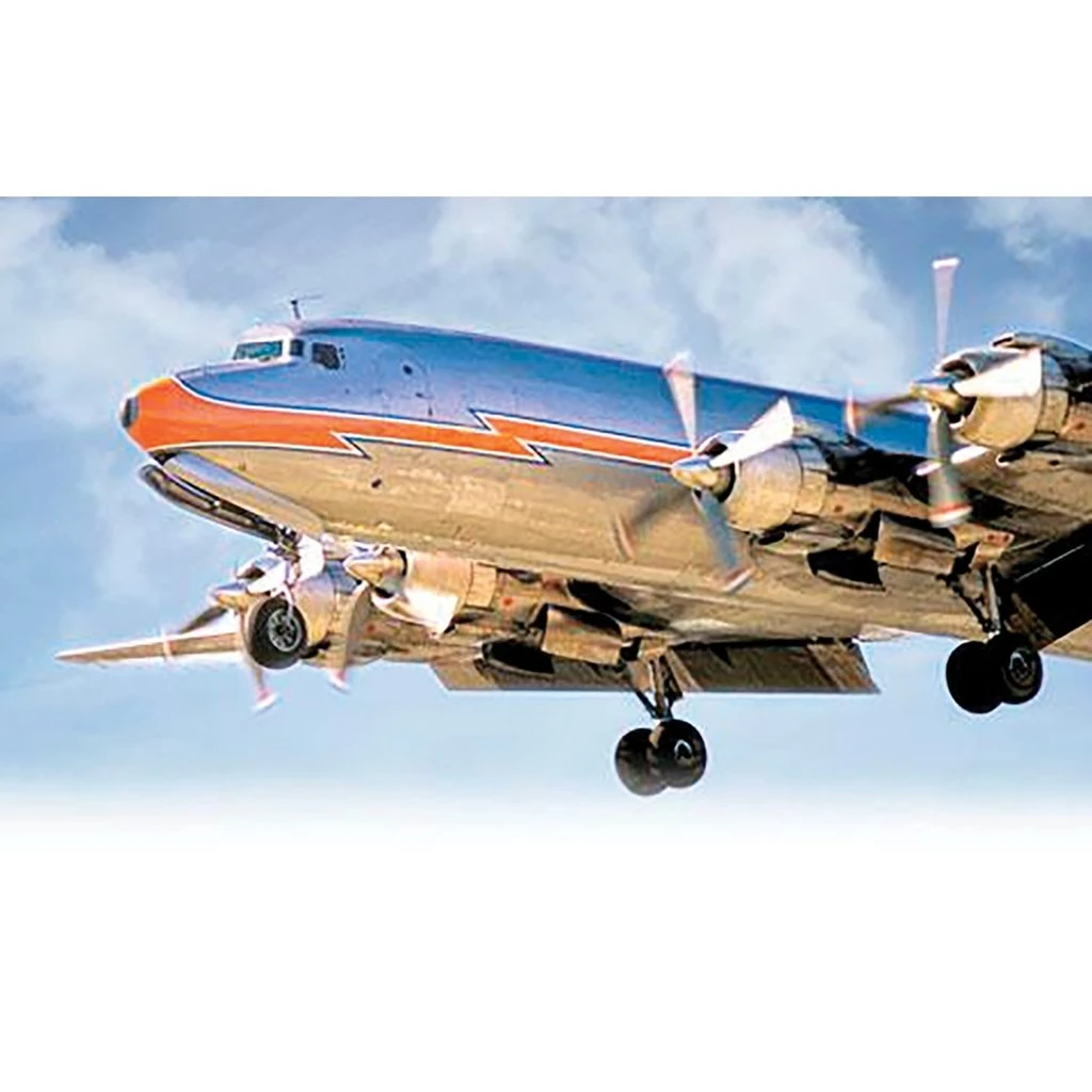 The DC-7 was Douglas’ last major piston engine-powered transport aircraft. Built 1953 – 1958, it entered the American Airlines flagship service on its New York-Los Angeles route, becoming the first airliner to offer nonstop transcontinental service in both directions, flying westbound against the prevailing winds. 44924 began its career with American Airlines in 1956, eventually being converted to a freighter in later years, most notably with Ortner Air Service in Ohio. Walter Soplata acquired its cockpit and other fuselage sections during the 1970s from the Ortners.