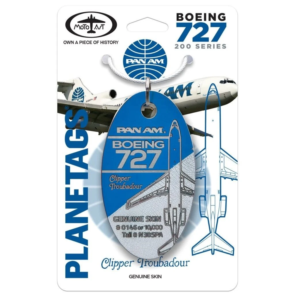 Pan Am 727 Plane Tags are a tangible piece of Pan Am’s legacy. Indulge in the allure of vintage air travel and own a piece of aviation history with limited-edition Pan Am Boeing 727 Plane Tags.