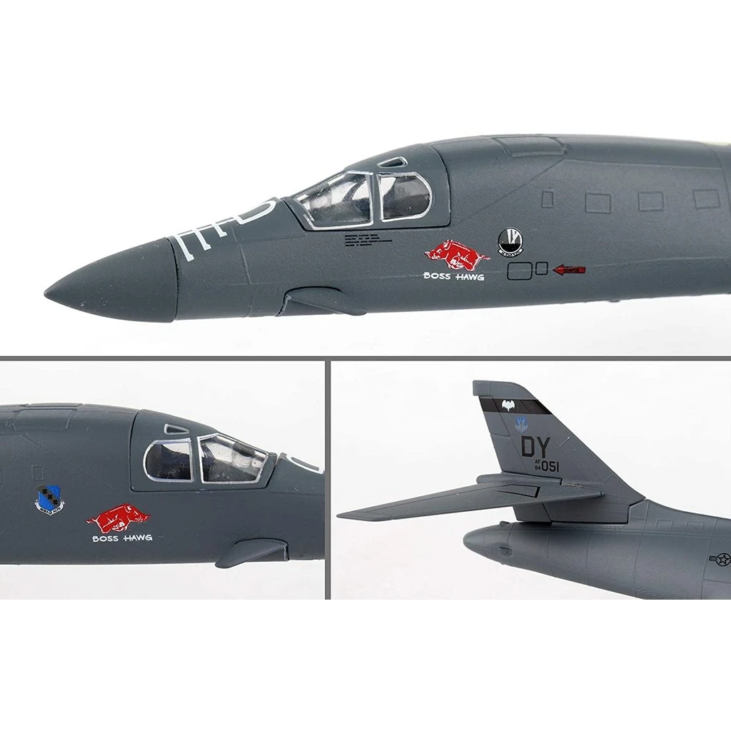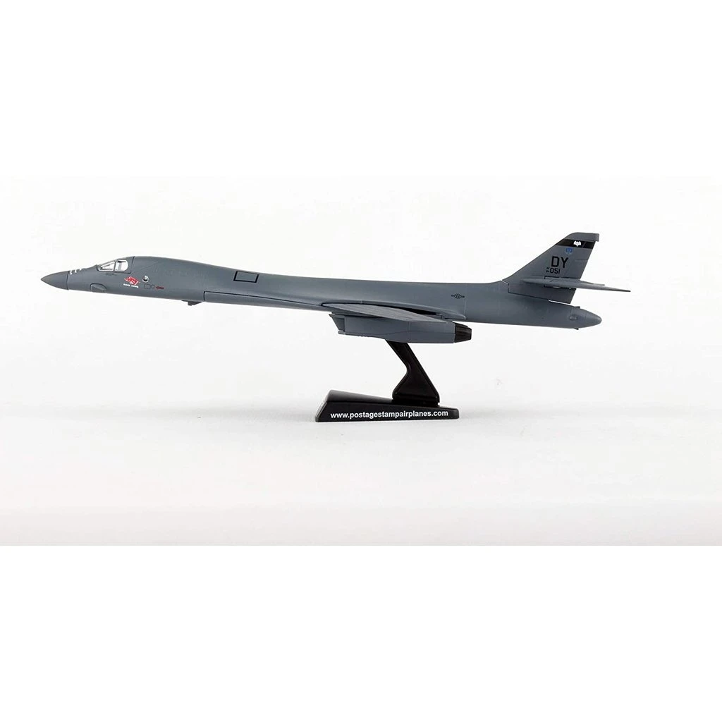 The Rockwell international (now Boeing) b-1b Lancer is a four-engine, supersonic, swing wing, jet powered, heavy strategic bomber. Used by the United States air force, it is primarily a low-level penetrator. The b-1b has long range capability and travels at high altitude with speed of Mach 1.25, and at low level speed of Mach 0.92. The b-1b celebrated its first flight on December 23, 1974 and became operational in 1986 with USAF strategic air command as a nuclear bomber. In early 1990S b-1b fleet was reassigned to air combat command and aircrafts were converted to use conventional and all-weather guided “smart” munitions. Its first combat mission occurred in 1998 during operation “desert fox” in Iraq. In 1999 it was again deployed to support operation “Allied force” in Kosovo. Commonly called the “bone”, derived from “b-one”, the b-1b holds 61 world records for speed, payload and distance. And while inventory of the b1-b was reduced from 91 aircraft, 67 still remain in service, and are expected to continue service until 2030. B-1b Lancer named “boss hawg” tail# 84-0051 is 10th b-1b produced. This die-cast metal airplane PS5404-2 comes in 1:221 scale with plastic stand and is approximately 8 inches long with 4 1/4 inch wingspan in high speed combat mode and 7 1/4 inches in low speed take off / landing mode.