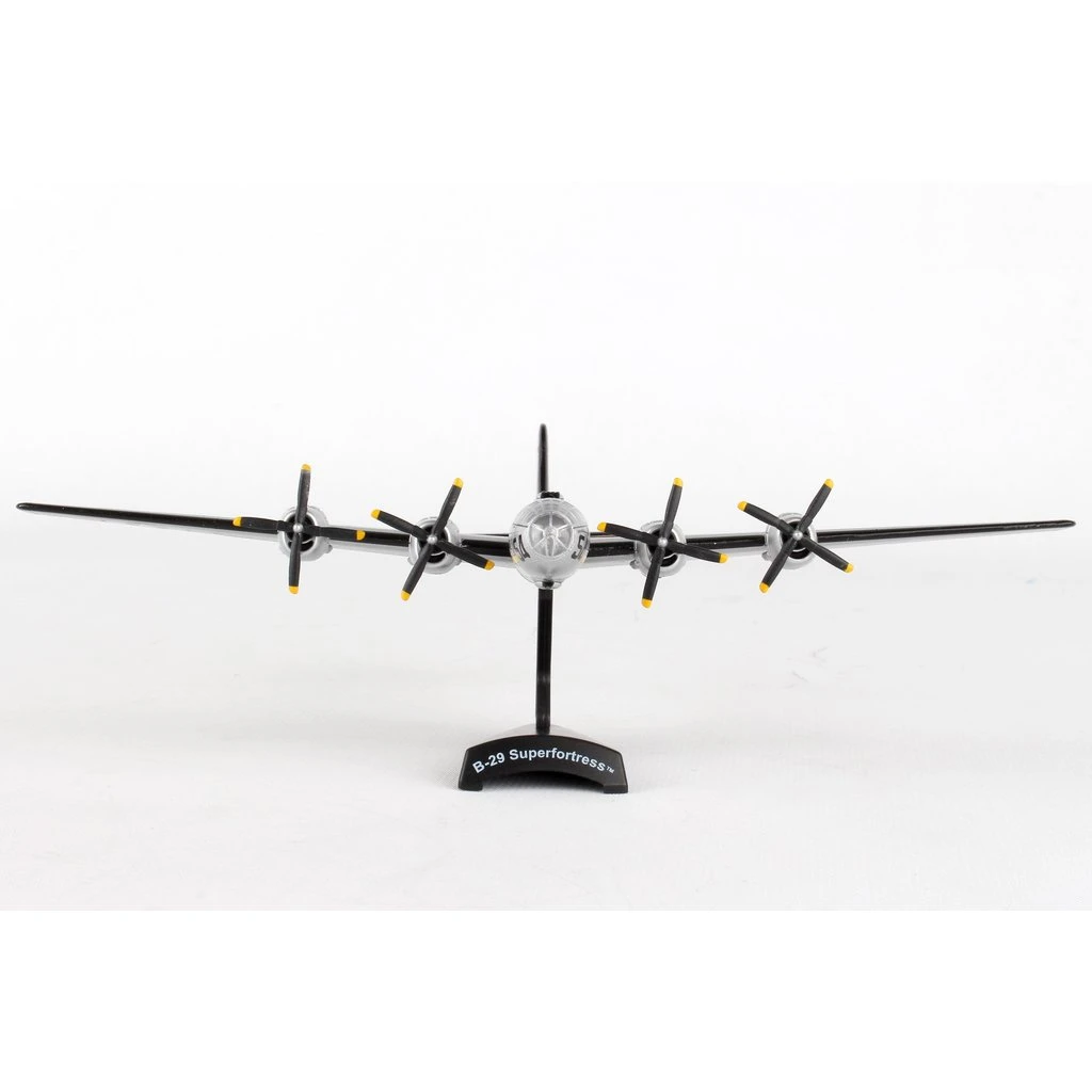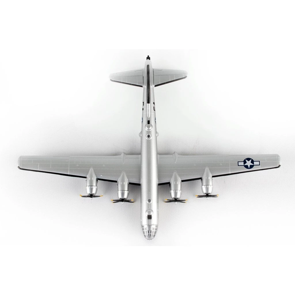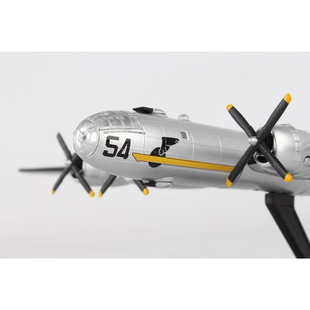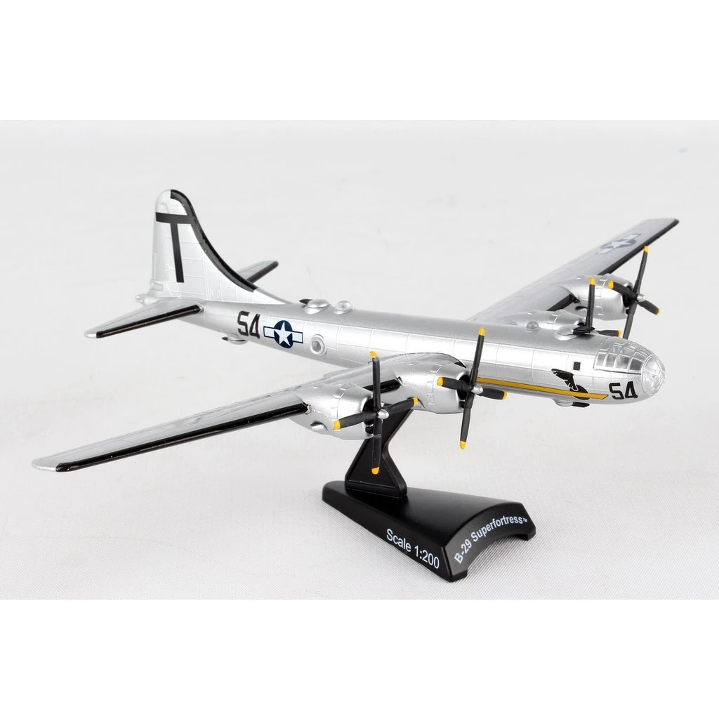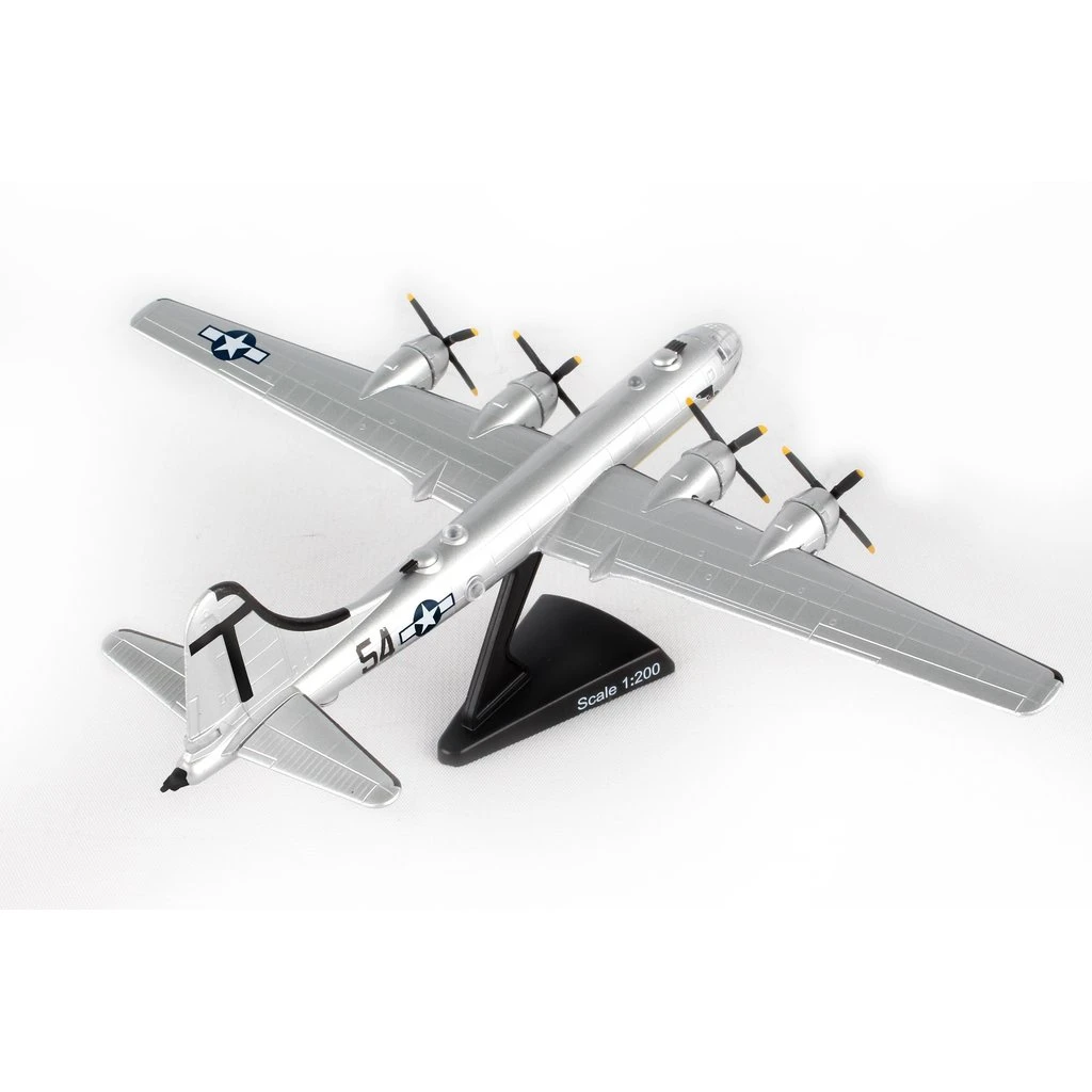 Boeing’s four-engine propeller-drive B-29 Superfortress was one of the largest aircraft used during World War II. The world’s most-advanced bomber at that time, it featured three pressurized crew cabins, which allowed for high-altitude flight, remotely operated machine gun turrets and a maximum bomb load of 20,000 pinds (9.071 kg). Know as T Sqare 54, (from it’s radio call sign), this Boeing B-20 that is on display at Seattle’s Museum of Flight fought in the US Army Air Force’s Pacific Theater of operations during World War II, flying 37 bombing missions from the Mariana Islands with the 875th Bombardment Squadron, 498th Bombardment Group, 73rd Bombardment Wing. This Die-cast metal airplane model comes in 1:200 scale with plastic stand and is approximately 5 7/8 inches long with 8 1/8 inch wingspan.