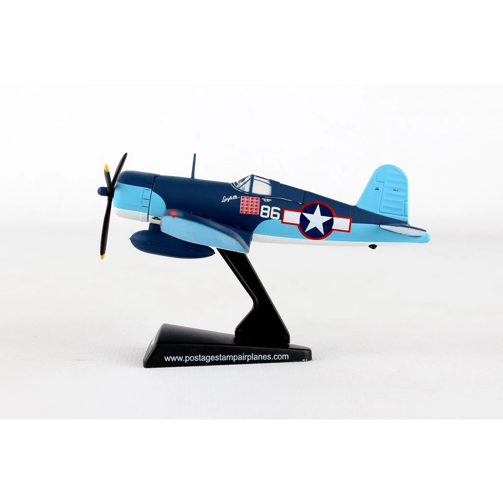 The F4U Corsair was a naval fighter aircraft used by the United States Navy and Marine Corps during World War II and the Korean War. Its excellent capabilities and performance made it very successful for the USMC. The F4U had a long production life span and was last produced in 1952. It had a max speed of 417 mph and carried six .50 caliber machine guns or four 20mm cannons, as well as a pair of 2000 lb. bombs and air rockets.