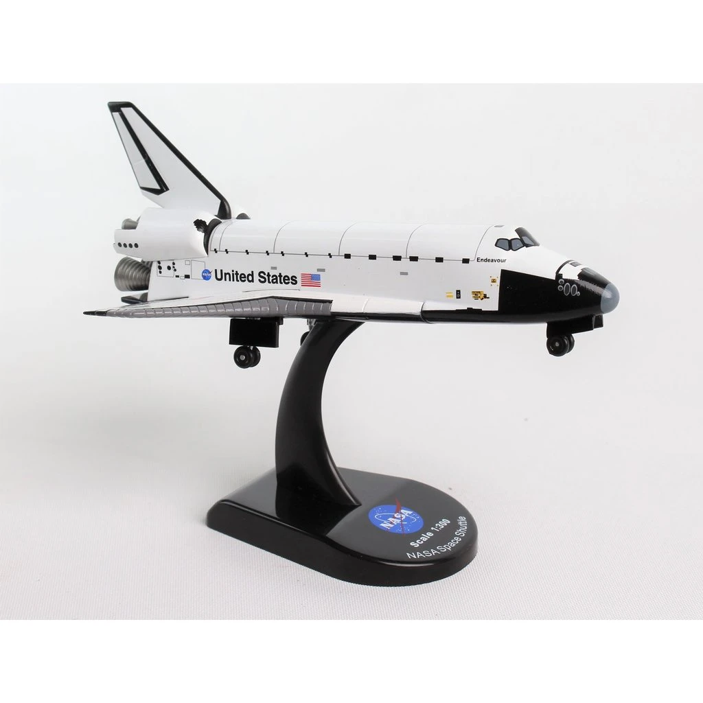 The Space Shuttle Orbital Vehicle was developed and operated by NASA as part of the Space Transportation System Program. It is the first orbital human spacecraft designed for reusability. The Space Shuttle Endeavour (OV-105) is named after the first ship commanded by 18th century British explorer James Cook. Orbiter Endeavour first arrived at Kennedy Space Center’s Landing Facility in 1991. The first mission was the STS-49, Intelsat VI repair mission on May 7, 1992. The last mission was STS-134 (May 16 – June 1, 2011) and was the Endeavor’s 25th mission. The Endeavour is now retired and on display at the California Science Center. This Die-cast metal spacecraft model comes in 1:300 scale with plastic stand and is approximately 4 3/4 inches long with 3 1/8 inch wingspan.