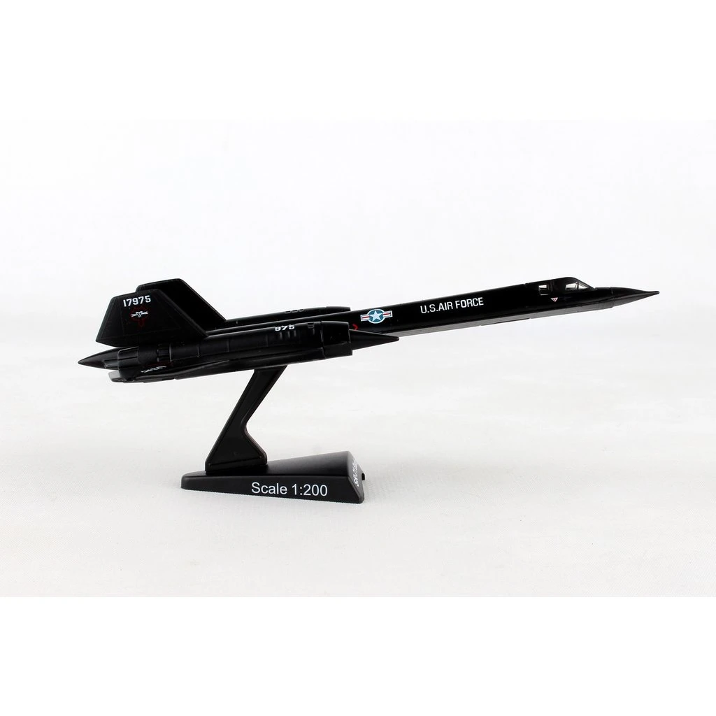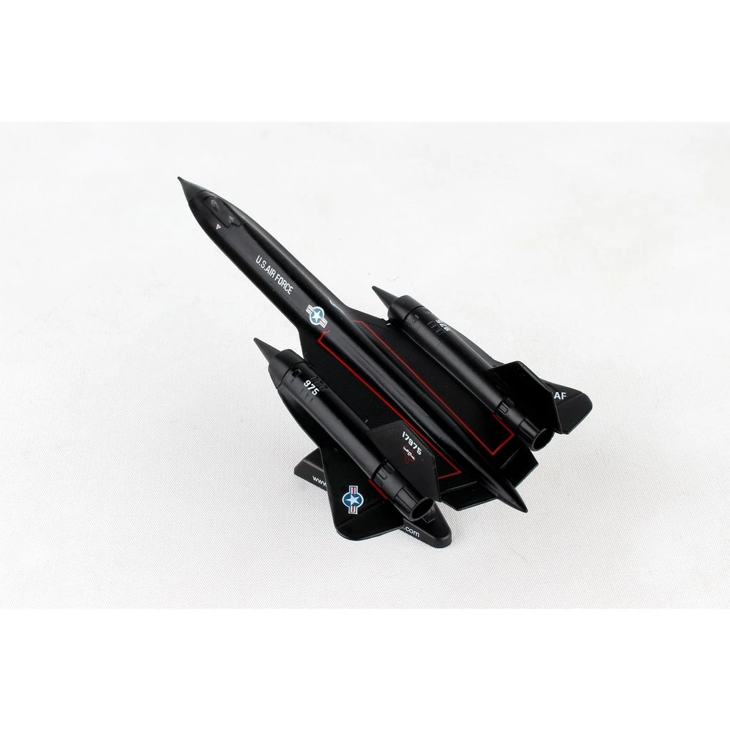 After 30 years in service the Blackbird still looks like a 21st century aircraft. The SR-71’s mission was strategic reconnaissance. One of the fastest planes ever built, it reached a top speed of more than 2,200 mph at an altitude of 80,000 feet. At this altitude, the crew needed to wear special pressurized suites and helmets and required 100% oxygen to survive. Because of its unique look and technological achievements, this aircraft is a favorite among aviation enthusiasts. This die-cast metal model comes in 1:200 scale with plastic stand and is approximately 6 3/16 inches long with 3 3/16 inch wingspan.