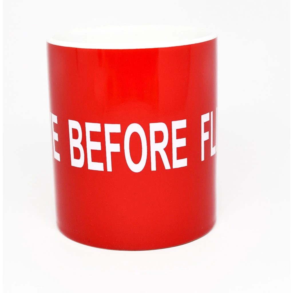 These coffee mugs are red and feature the copyrighted term, “Remove Before Flight”, as many Pilots will know.