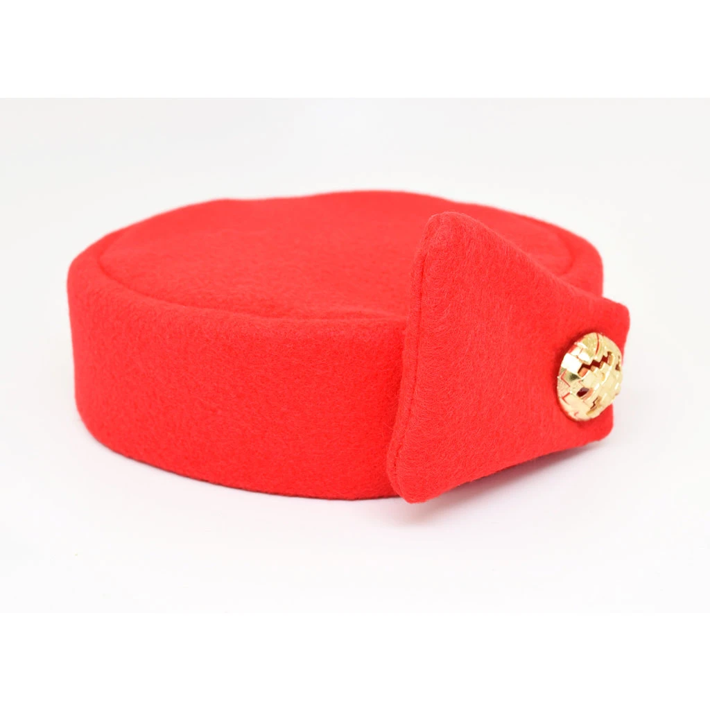 The Flight Attendant Style Pillbox is hand-made in a solid color polyester felt with cotton or polyester cotton blend.