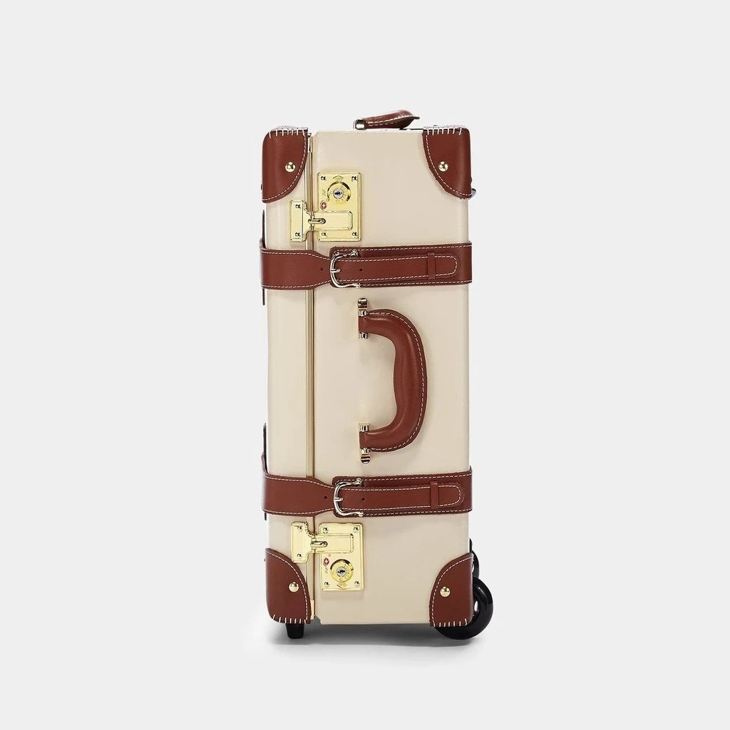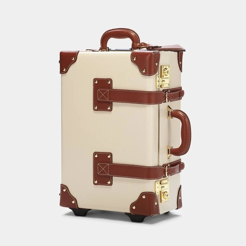 Meet The Diplomat Carryon, a timeless piece suited to a lifetime of adventure. Marrying a classically elegant look with the practicalities of travel, the rich porcelain cream cabin-size suitcase opens to reveal a serene lining of tan waves.