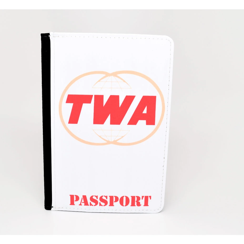 This Passport case features the twin Globe logo used by TWA. Perfect for holding your passport with this vintage travel theme passport case.