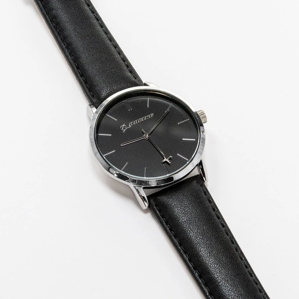 Silver raised metallic Boeing logo on dial